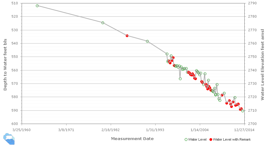 At this rate, and using 7.6MM acre feet in storage to a depth of 1,200 feet, the water would last approximately 216 years.