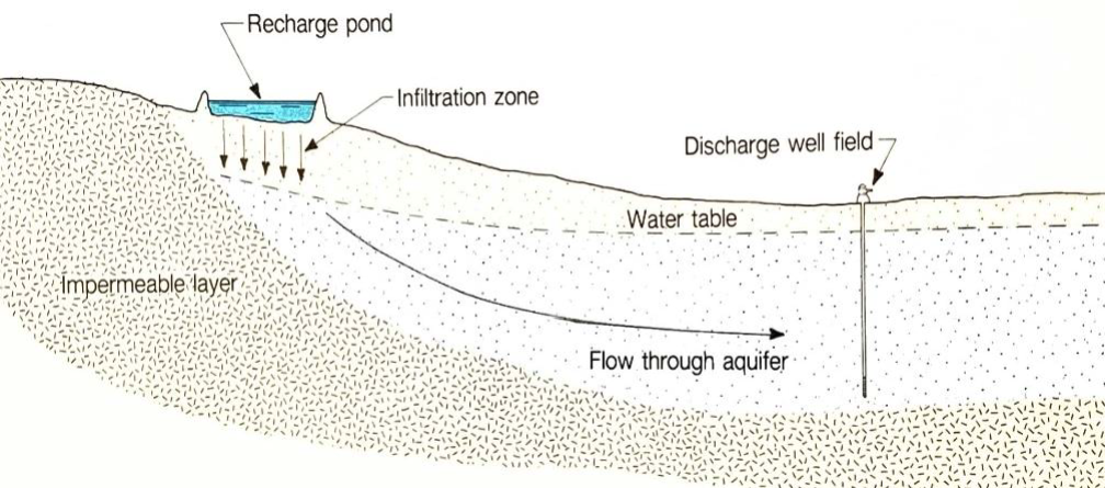 - Groundwater is recharged from infiltration of mountain streams along the foothills of the mountains