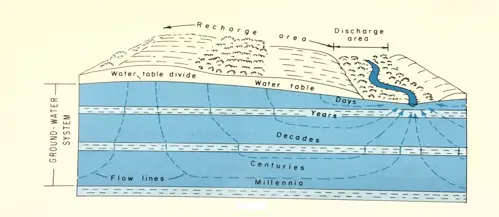 - Groundwater flow through the sediments of the aquifer can take years or decades