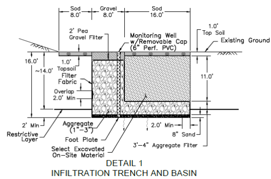 - Sites containing underlying subsurface soils of clean sand and gravel with negligible fines content will be suitable for infiltration without any further engineering measures