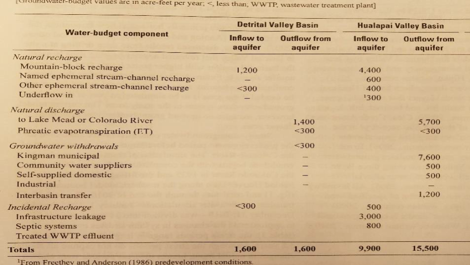 In the Hualapai Basin Aquifer the Outflow from the Aquifer (discharge) historically has exceeded the Inflow to the Aquifer (recharge), creating a Water Budget deficit