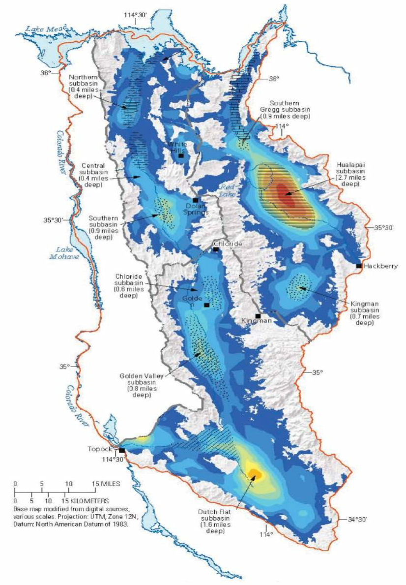 (Reference: USGS Scientific Investigations Report 2013-5122; Preliminary Groundwater-Flow Model of the Basin-Fill Aquifers in Detrital, Hualapai, and Sacramento Valleys, Mohave County, Northwestern Arizona)