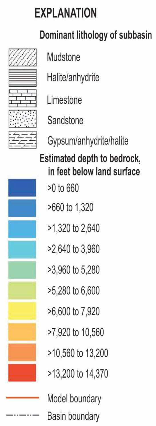 - Basin-fill deposits typically range from about 1,000 to 7,000 feet in thickness but are thinner or thicker in some locations