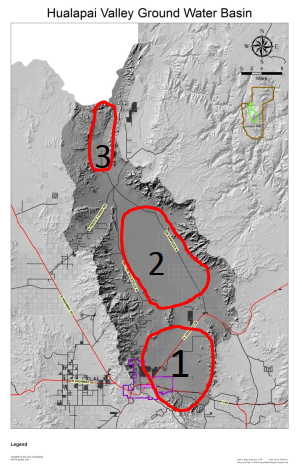 Hualapai basin can be thought of as a3 bath tubs each filled with sand, gravel and water separated by bedrock highs.