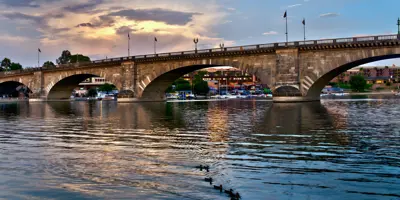 Lake Havasu City, home of the historic London Bridge, is situated on the eastern shore of Lake Havasu on the Colorado River border of California and Arizona. The City was established in 1963 by Robert P. McCulloch as a self-sufficient, planned community. The rivers and lakes offer fishing along with boating and other forms of water-oriented recreation.