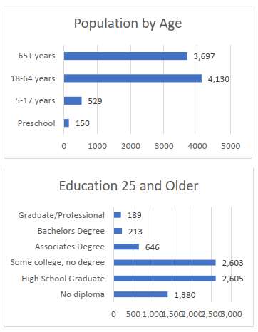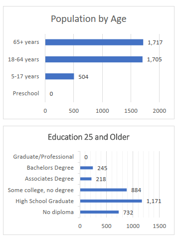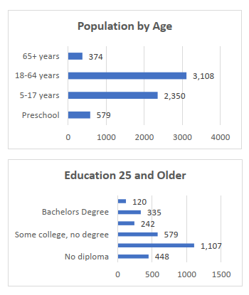 Wikieup is a small area southeast of Kingman along Highway 93 towards Phoenix. Wikieup has a cute K- 8 school, a few restaurants and community that pulls together and supports each other. In 2018, the census reported there was a population of 118. In 2021, the census reports there are only 32. This community is preparing for the future I-11 to go through their town and is concerned their community will completely be bypassed. They understand there is much work to do, to grow. They would like to see additional RV parks, a hotel, and someone to start a manufacturing business for people to go to work without traveling over 45 minutes to Kingman.