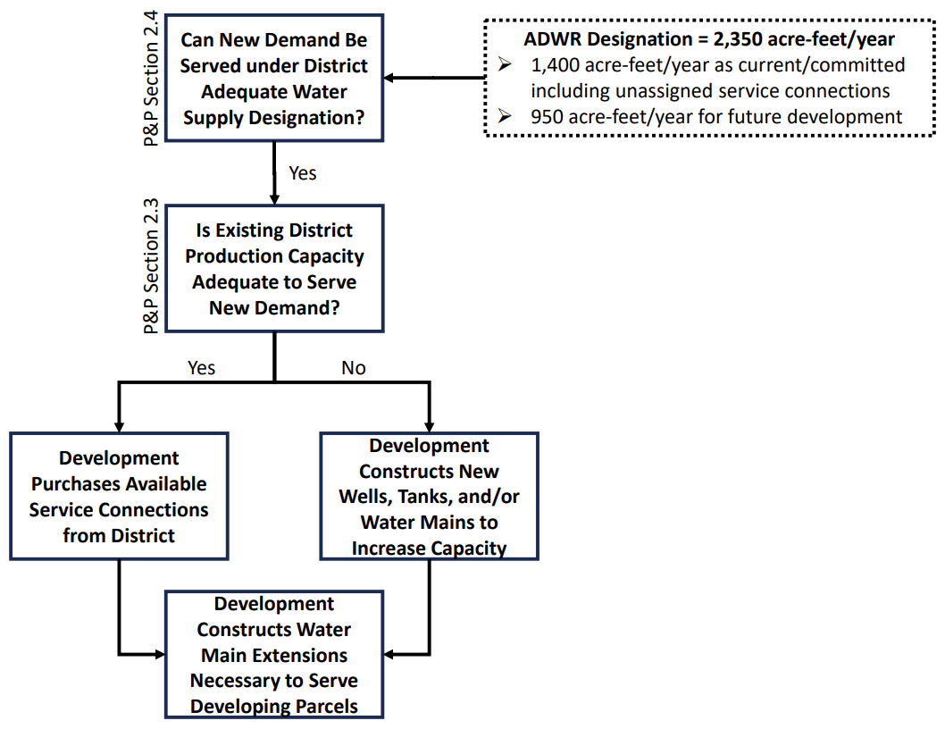 - Obtain Arizona Department of Environmental Quality (ADEQ) Approval for Construction for all water infrastructure improvements proposed for ownership conveyance to the District.