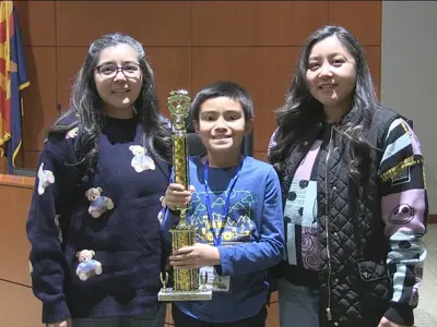 The Mohave County Spelling Bee winner is Ethan Escobar, who is a fifth grader at Hualapai Elementary School in Kingman. He garnered the top spot this year after finishing in 8th place last year. Escobar won in the 12th round with a correct spelling of the word “gumption” and qualified for the March spelling bee in Phoenix. Thunderbolt Elementary School seventh grader Otto Supernat was second in this year’s bee with third place honors earned by Starline Elementary School sixth grader Bryson Vogel-Struve.