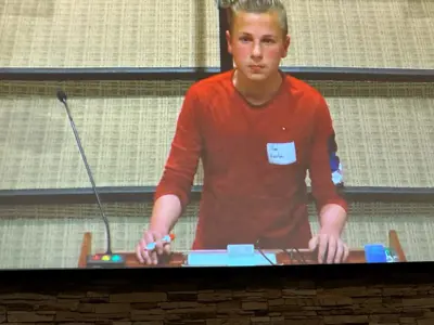 Ethan Knudson, 7th-grade student from Masada Charter School in Colorado City, Ariz. claimed the title of champion in Mohave County during the county-wide spelling bee. On Jan. 27 in Kingman, Knudson competed and out-spelled 24 other competitors who competed as their “school” champions. This was his third year in a row as the Masada school champion and the second year he has competed in the county contest. One year was canceled due to the pandemic.