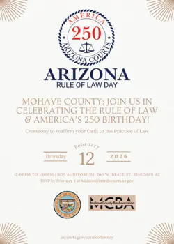 The Arizona Supreme Court, State Bar of Arizona, and courts in all counties are coming together to host statewide ceremonies on Thurs., Feb. 12, 2026, which is Arizona Rule of Law Day. The ceremony will include a celebration of the impending 250th anniversary of the Declaration of Independence, known as the United States Semiquincentennial.