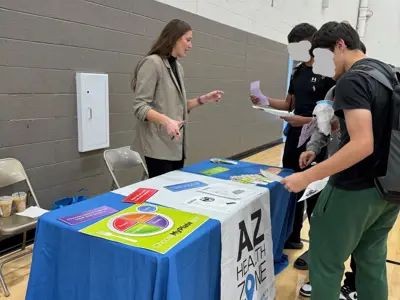 This is the Health Department’s Morgan Cannady at the Kingman High School Career Fair in mid-November. The Arizona Health Zone team spoke to over 200 students concerning the field of public health and what the Arizona Health Zone does. Among other things, AzHZ supports mothers and communities across the state to make healthy changes in homes and neighborhoods. From local gardens in communities, to working with schools to create healthy environments, AzHZ provides families the opportunity to be active and healthy.