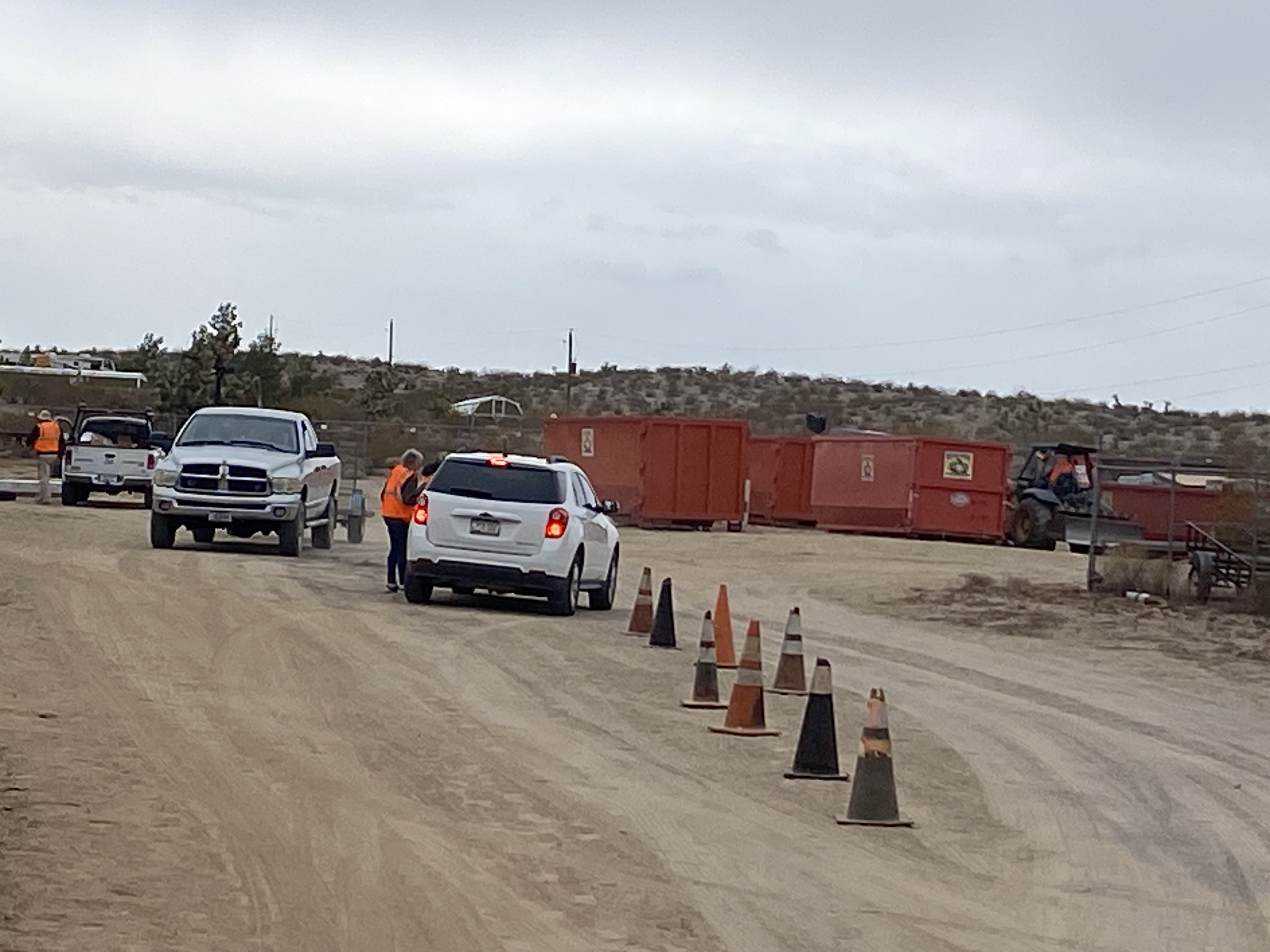 Last Saturday, November 2nd, Mohave County ERACE teamed up with local Meadview residents a free community trash day. The event entailed 11 dumpsters ranging from 40 yards to 60 yards in size, all available to take in unwanted household items. Over 100 vehicles contributed trash and one dumpster was completely filled with tires (rims previously removed). Household appliances were additionally disposed, and scrap metal was reserved for recycling.