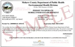 Mobile and Temporary Event food vendors that are inspected and permitted by the Mohave County Department of Public Health must display their permit; mobile food trucks must also display their rating card.